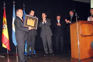 Gustavo Pulti recibió un pergamino de manos de Guillermo Hernández Cerviño.