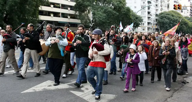 Los españoles marcharon al son de las gaitas por las calles de Buenos Aires.