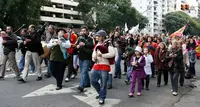 Medio millar de españoles residentes en Argentina tomaron las calles de Buenos Aires durante la marcha.