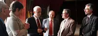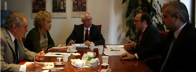 Miras Portugal conversa con los dirigentes de la Patriótica durante su visita a la entidad.