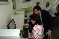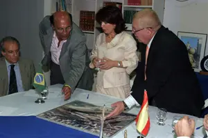 Pilar Pin, Manuel Antas Fraga y Jacques Wagner, gobernador de Bahía, en la inauguración del centro médico.