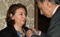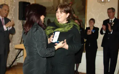 La abogada holandesa C. de Roy recibiendo la Cruz de la Orden del Mérito Civil.