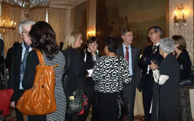 Pilar Pin y el embajador, con las mujeres del grupo hispano-holandés Ijmond.