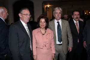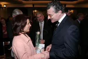 El cónsul general, Guillermo Brugarolas, saluda a Pilar Pin.