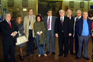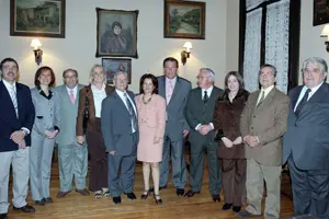 Pilar Pin, con la directiva del Centro Gallego de la capital uruguaya.
