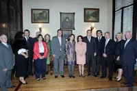 Pilar Pin posa con la embajadora, consejero laboral y directivos de diferentes instituciones españolas.