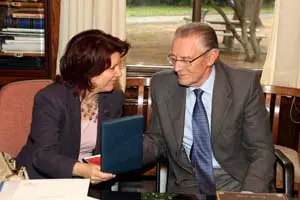 Pilar Pin se reunió con José Luis Peña, presidente del Hospital Español.