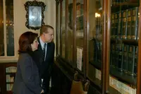 Víctor Moldes muestra a Pin la biblioteca de la institución.