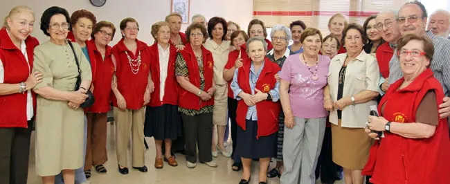 Pilar Pin posa con los residentes en el Centro de Día de la Sociedad Española de Socorros Mutuos Hospital Español.