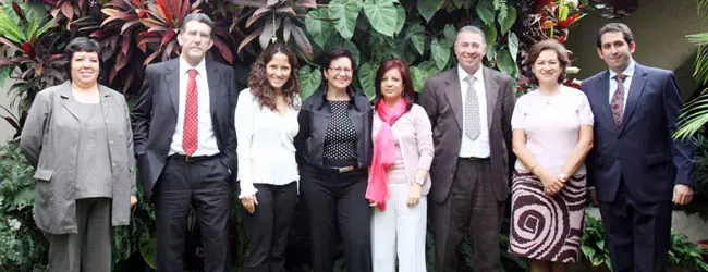 Pilar Pin posa con el personal de la Consejería Laboral, a cuyo frente está José Vallés.