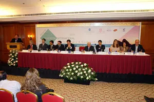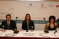 La mesa del Congreso. A la derecha, Andrea Paredes, Pilar Pin y Santiago Camba.