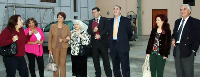 La directora general de la Ciudadanía Española en el Exterior, Pilar Pin, posa con la directiva de la Asociación de Jóvenes en Perú.