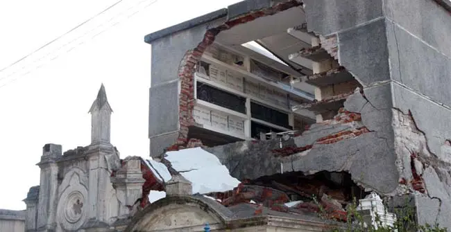 Aspecto de cómo afecto el terremoto al Mausoleo de la Sociedad Española de Beneficencia en Concepción.