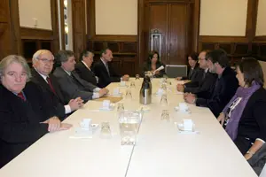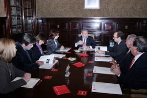 Pilar Pin reunida con los dirigentes de Casa de Galicia y de la Asociación Española.