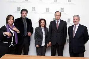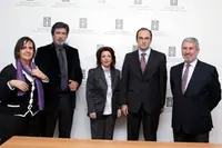 La directora general, la subdirectora Yolanda Gómez, Barros y los consejeros laborales posan en la delegación de la Xunta.