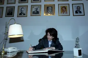 La directora general, firmando en el libro de la Cámara Española de Comercio.