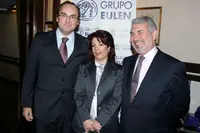 La directora general posa con los consejeros laborales de Uruguay y Argentina, Julio Olmos y Guillermo Hernández, respectivamente.