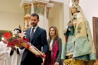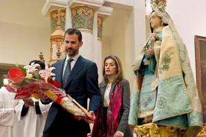 Don Felipe y doña Letizia, durante la ofrenda floral a la Virgen La Conquistadora en Santa Fe.