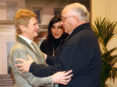 Consuelo Rumí saluda a Manuel Maya, uno de los premiados.