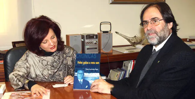 Jorge Cosía muestra la portada del libro en presencia de Pilar Pin.