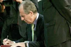 El presidente de Iberdrola, Ramón de Miguel, firma el acuerdo.