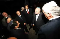 El embajador Dámaso de Lario; la esposa de Cunill; Pedro Cunill Grau; el ministro Miguel Ángel Moratinos; el ministro de Educación de Venezuela, Héctor Navarro; y Mario Villarroel Lander.
