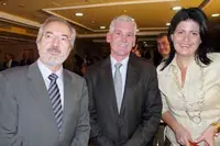 Fernando Puerto, director de Relaciones Internacionales del Consejo Superior de Cámaras; Eugenio González de la Vega, presidente de Cavespa; y Natalia Rodríguez Pérez, directora ejecutiva de Cavespa, durante su encuentro en el Foro Empresarial Es
