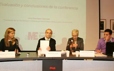 Intervención de la consejera laboral, Susana Peri, junto a Victoria Cristóbal, José Povedano y José Ramón Álvarez.