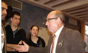 El secretario xeral de Emigración conversa con algunos de los asistentes al congreso.