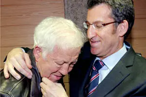 El líder del PPdeG consuela a su padre, emocionado en la sesión de investidura.