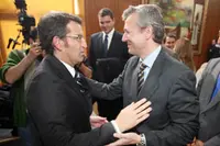 Quintana, Aymerich y Blanco, del BNG, se acercan a Feijóo tras la elección.