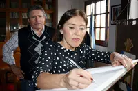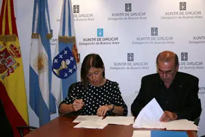 Beatriz Mato firmó un convenio con el presidente del Centro Gallego de Mar del Plata, Francisco Solla.