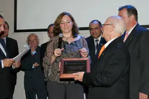 La presidenta de Correos, Cristina González, entregó una placa de felicitación.