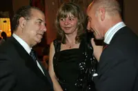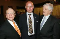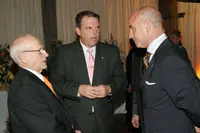 Camba -en el centro- con el presidente del Centro Gallego, Julio Ríos, y el de la Unión de Sociedades Gallegas, Eduardo Alonso.
