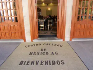 Entrada al salón de actos donde tuvo lugar el encuentro de empresarios, en el Centro Gallego de México.