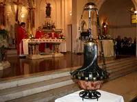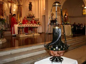 El botafumeiro donado por la Federación Unión de Asociaciones Gallegas fue bendecido durante el acto religioso.