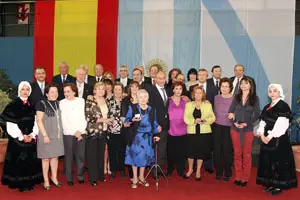 Los dirigentes gallegos con los protagonistas del nacimiento del Centro Galicia hace 30 años y sus descendientes que recibieron una distinción.