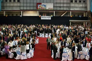 El recinto del salón deportivo se llenó en la cena aniversario de la entidad.