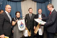 La comitiva gallega y los responsables del centro intercambiaron regalos.