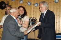 Santalices recibe una placa conmemorativa de manos de Ramiro Vieito.