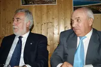 Ramiro Vieito, presidente de la Coordinadora –a la dcha.–, se dispone a entregar los obsequios a los presidentes de los centros