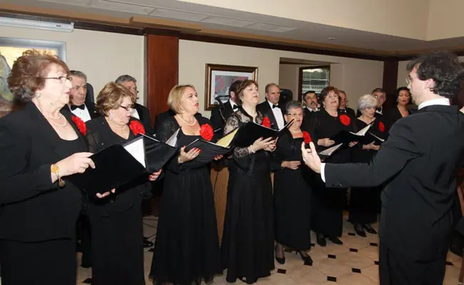 La Coral de la Casa de Galicia de Nueva York, durante su actuación en la cena de gala.