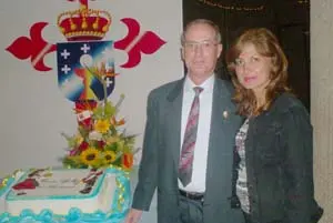 Francisco Gil Casas, homenajeado con el ‘Botón de Oro’ de 25 años como socio, es felicitado por la secretaria ejecutiva, Daisy Mocharrachif.