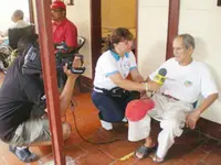 Marisol Casares de Peña, entrevistando a uno de los usuarios del Hogar ‘José Gregorio Hernández’, para la Televisión de Oriente (TVO).