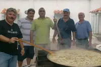 Celso Opazo, Hilario Población, Vicente Muñiz Mirón, Adriano García y Francisco Martín, preparando la suculenta paella.