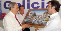 El presidente Feijóo recibió un cuadro que reproduce la ciudad vieja de Salvador de Bahía.