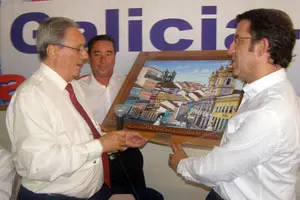 El presidente Feijóo recibió un cuadro que reproduce la ciudad vieja de Salvador de Bahía.