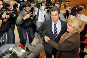 Feijóo -en el centro- con su familia y sus compañeros de partido.