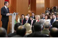 Feijóo, con los ex presidentes Fraga y Touriño.