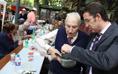 El presidente Feijóo probó los pimientos de padrón que había en la celebración.